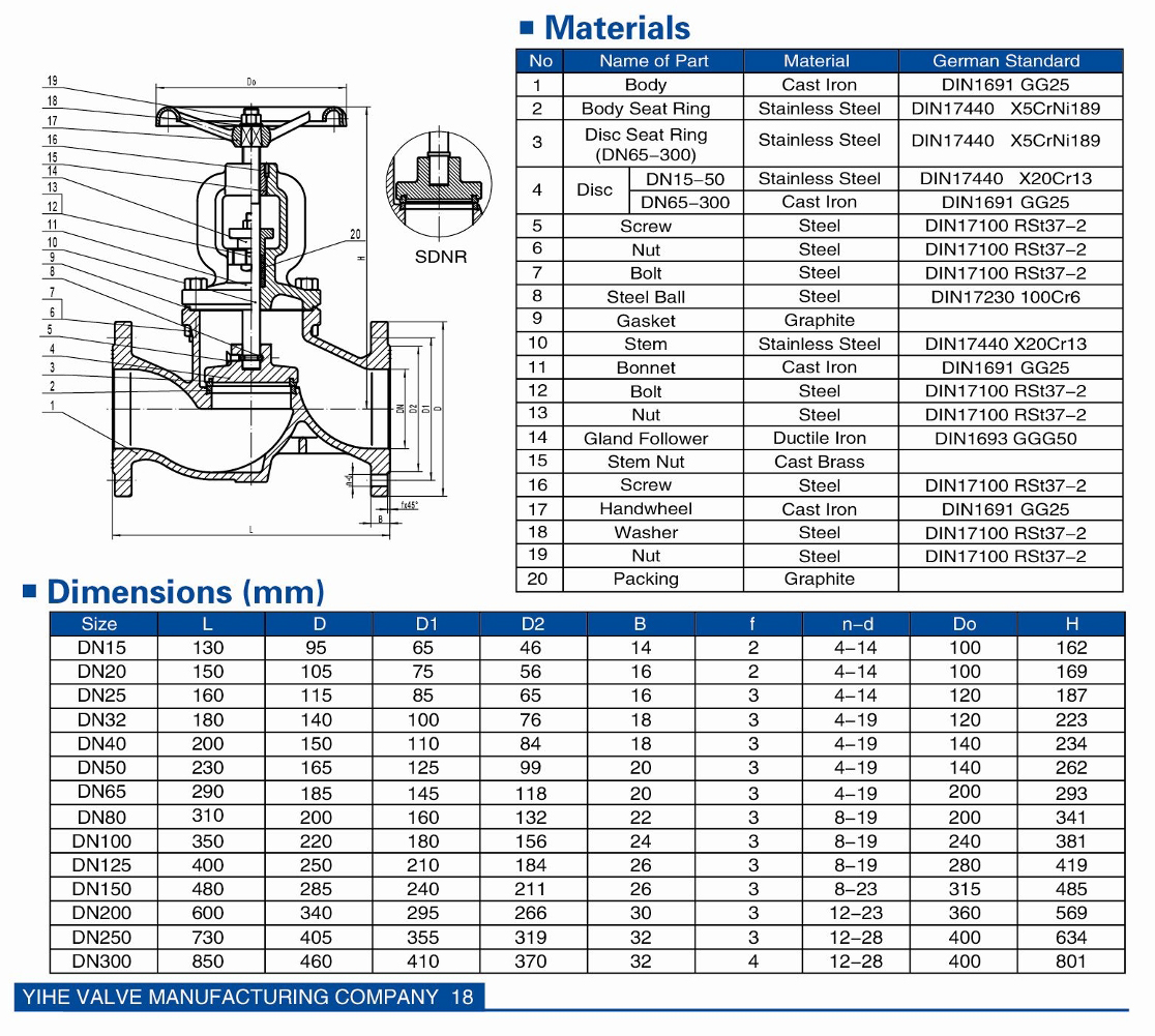 Technical Specifications1.Design Standard: EN 13789(DIN 3356)2.Face to Face Dimensions: EN 558-1 Basic Series 13.Flange Dimensions:EN 1092-24. Testing Standard: EN 12266
