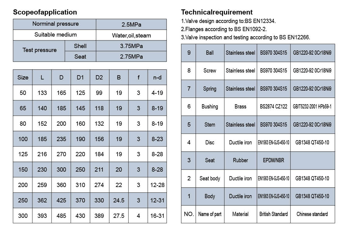 1.Valve design according to:BS EN12334.