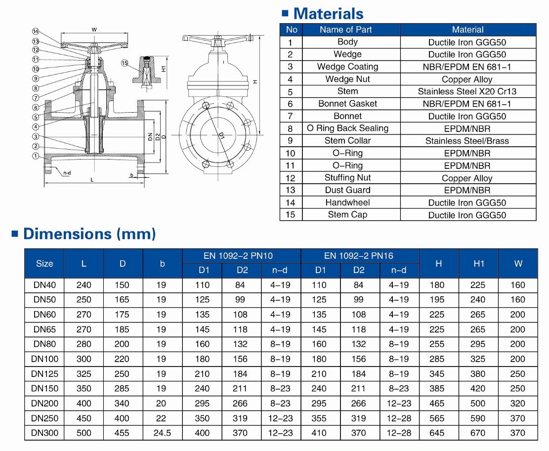 Technical Specifications1.Design Standard: EN 1171 (DIN 3352)2.Face to Face Dimensions: EN 55B-1 Basic Series 153.Flange Driling:EN 1092-24. Testing Standard: EN 12266