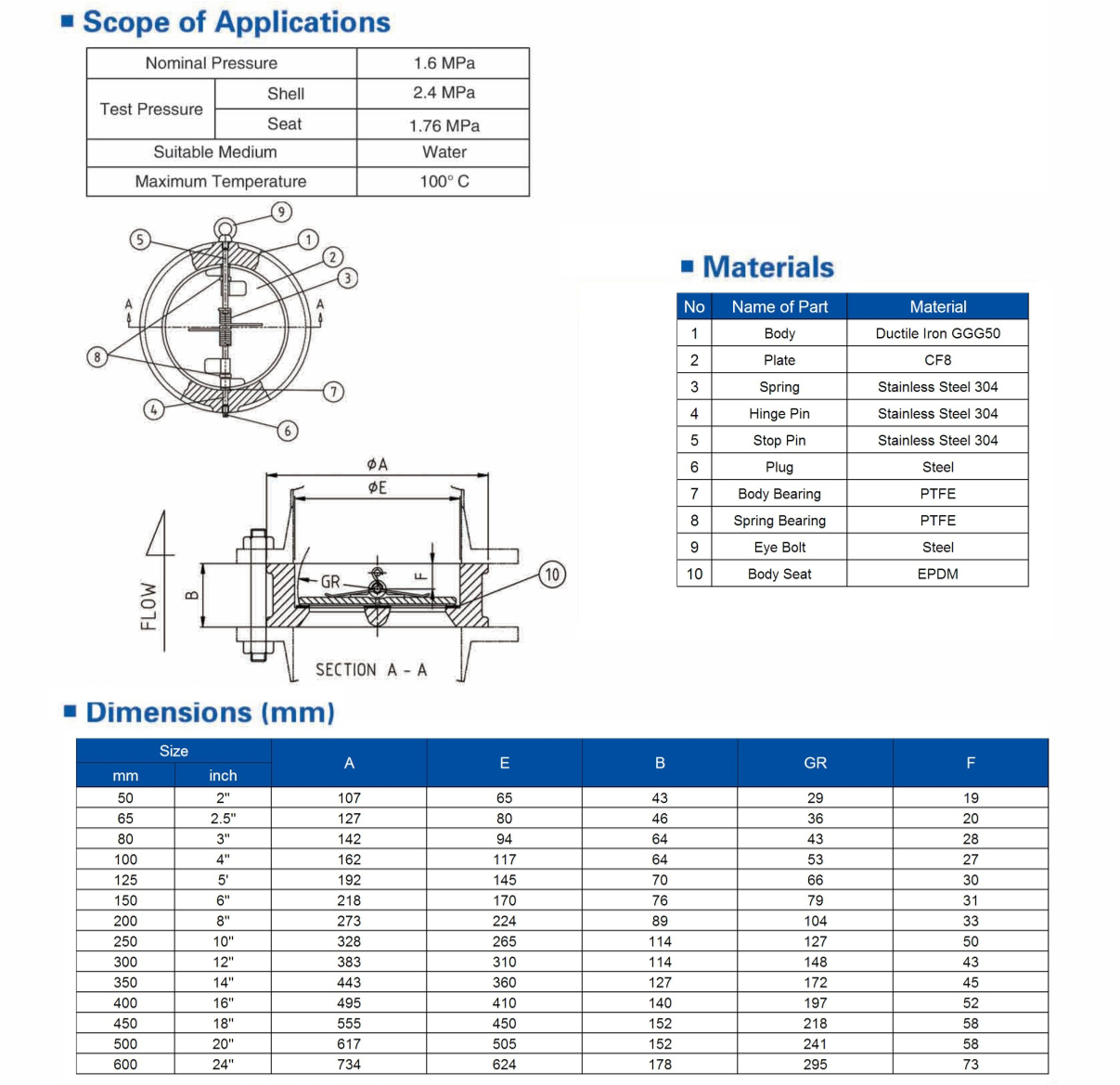 Technical Specifications1.Design Standard:EN12334(BS5153)2. Face to Face Dimensions: EN 5581-1 Basic Series 163.End Standard:EN1092-2PN164. Testing Standard: EN 12266-1
