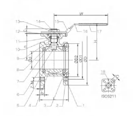 2-PC Wafer Flange Ballvalve,Full Bore, 15olb