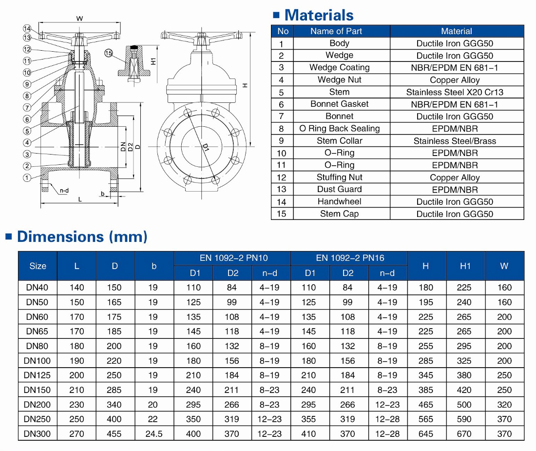 Technical Specifications1.Design Standard: EN 1171 (DIN 3352)2. Face to Face Dimensions: EN 558-1Basic Series 143. Flange Driling:EN1092-24. Testing Standard: EN 12266