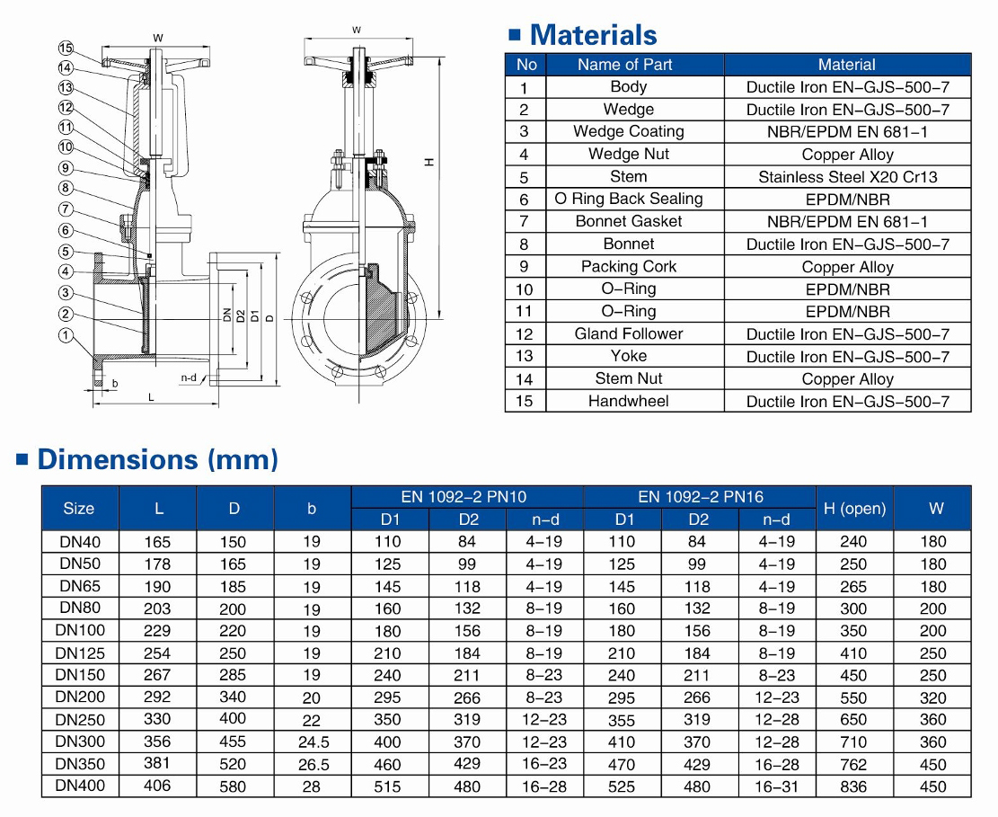 Technical Specifications1. Design Standand: EN 11712.Face to Face Dimensions: EN 55B-1 Basic Series 33.Flange Driling: EN1092-24.Testing Standard: EN 12266